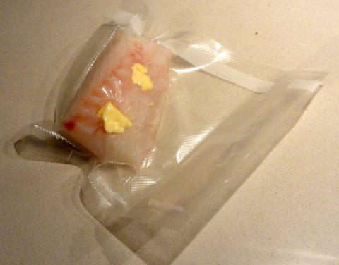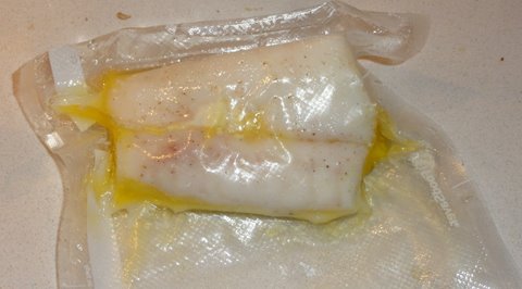 Remove the fish from the bag and sear in very hot butter on all sides (try to keep as whole as possible, but fish will break).