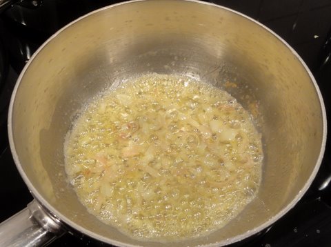 Meanwhile, chop the shallot and sauté it in a small saucepan in some butter until translucent.