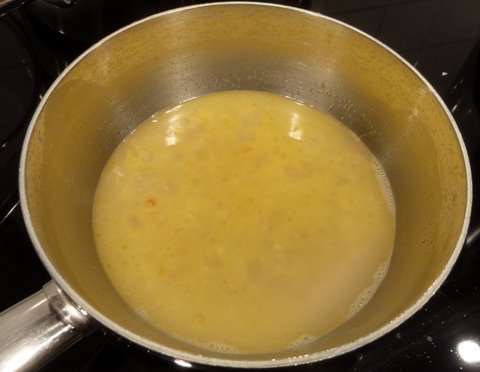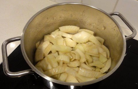 Clean the fennel and cut into strips. Sauté the fennel in some butter, season with salt and freshly ground white pepper and let braise covered for around 30-45 minutes over medium-low heat until golden brown. Stir now and then and make sure that it doesn’t burn, but on the other hand the taste will be enhanced if it is browned quite a bit as you can see in the final picture. At the end of the cooking, squeeze a bit of lemon juice on the fennel and stir.