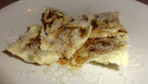 I served the ravioli with the stock (mounted with butter), some fresh thyme leaves and some freshly grated parmigiano on warm plates.
