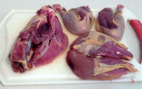 First I cut off the breast fillets and the legs. You can also ask your butcher to do this for you.
