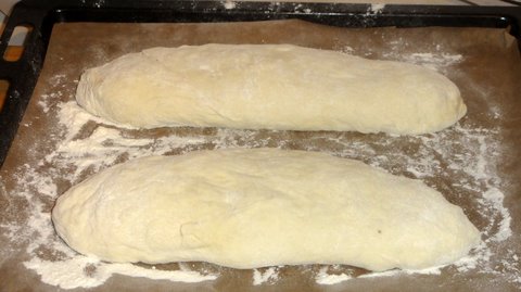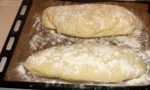 After an hour the dough will have increased in size. Sprinkle with flour and bake in the pre-heated oven at 225C/435F for 30 minutes.