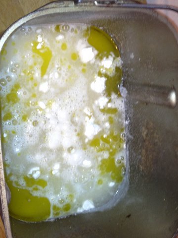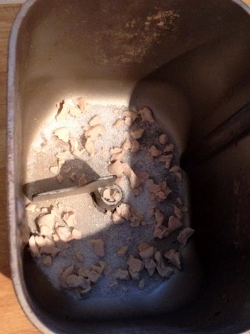 Crumble the yeast into the breadmaker’s bowl and sprinkle with sugar.