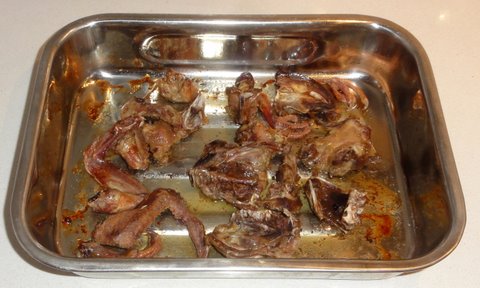 Roast the remainder 2/3 bones pieces in a hot oven (225C/435F) until golden, about half an hour. Deglaze the roasting pan with cold water.