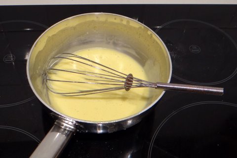 While the fish is cooking, make the Hollandaise sauce. Hollandaise sauce is notorious because it curdles easily. This is the first time I’ve used Harold McGee’s ‘nearly fool-proof’ method, and it worked like a charm!