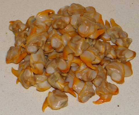 Meanwhile, take the clams out of the shells. Discard the shells, onion and parsley stalks.