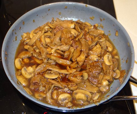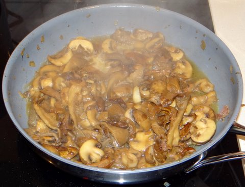 Meanwhile, clean the mushrooms if necessary and cut them into thick slices.