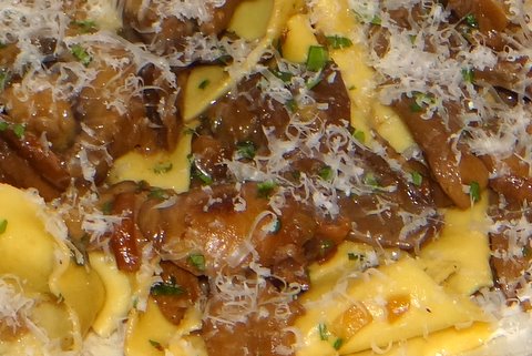 Cook the pasta in boiling salted water for a few minutes until al dente. Drain and add to the mushrooms. Add chopped parsley. Toss to mix. Serve on preheated plates with some freshly grated parmigiano reggiano.