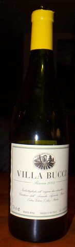 This goes well with north-Italian white such as Gavi di Gavi or Verdicchio dei Castelli di Jesi. We enjoyed it with one of our favorites: Verdicchio dei Castelli di Jesi Riserva Villa Bucci. This wine is aged in oak, but not in new barriques. It comes from a very nice terroir and has great complexity and minerality.