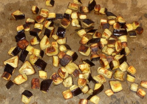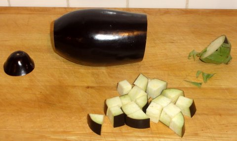 Wash and dry the eggplant. Cut into cubes.