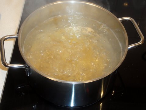 Bring a pot of water to a boil. Add salt and the pasta. Cook al dente according to instructions on the package.