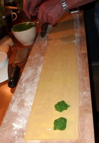 I also followed your recipe for spinach and ricotta filling – from your workshop recipe. I halved it as I was only cooking for 4 and thought this would give me enough filling for 24 ravioli. Ended up using only half of the past a dough and all of the filling and getting 17 ravioli. Not sure what went wrong there in terms of amounts….however, no burst ravioli which was my big concern and I think 4 each with some bread on the side was probably enough for all anyway. My husband, who would happily eat 17 ravioli himself, got the extra one.