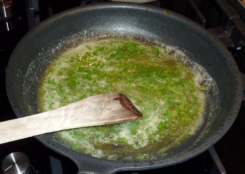- Add chopped flatleaf parsley and minced garlic for the final minute of sautéing
