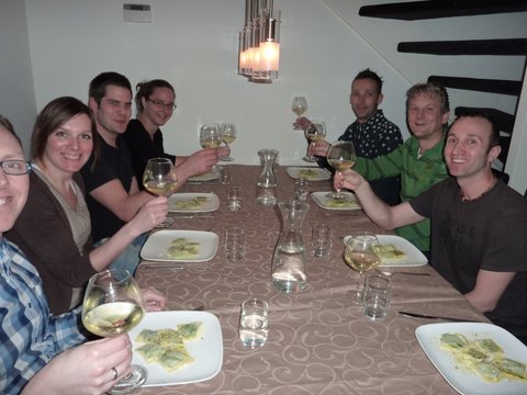 …and had a different matching wine with each type. We had a great evening! Home-made ravioli tastes so much better than the stuff from a factory you can buy at the supermarket. It will take a bit of practice, but if you already know how to make fresh pasta it’s not very hard if you follow my instructions for making home-made fresh pasta. With a group of 8 we had a full meal out of the 5 ravioli courses, using 8 eggs and 800 grams of Italian 00 flour. Below are the recipes for the stuffings. Unfortunately we did not take pictures of all the steps or all the finished dishes, but as you will see most preparations are very similar.