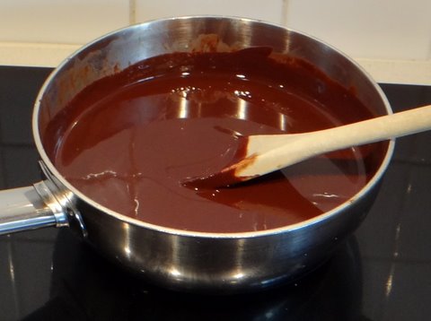 Melt the chocolate (broken into pieces) and the butter (cut into pieces) over very low heat or au bain marie.