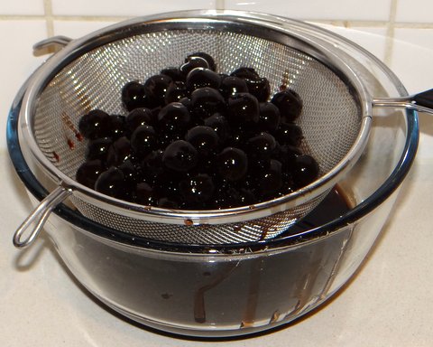 500 grams (net weight) pitted sour cherries with syrup from a can or jar, preferably Italian amarene
