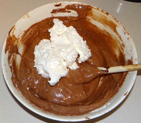 Gently fold in the egg whites in three additions. By doing this gently, you keep as much air in the batter as possible.