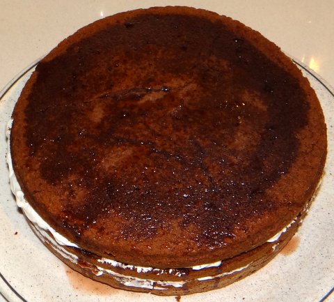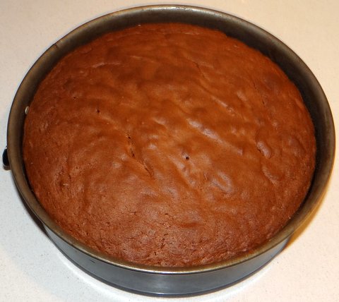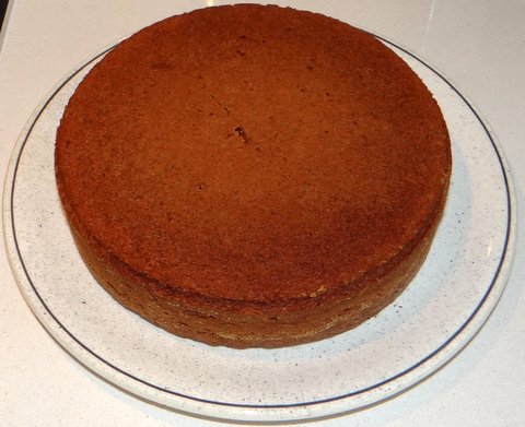 Turn over onto a large flat plate and let cool. Press down gently on the cake to make it flat if needed.