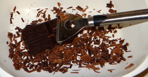 Make chocolate shavings using a potato peeler.