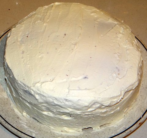 Cover the entire cake, top and sides, with whipped cream.
