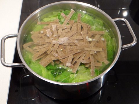 Add the pizzoccheri and cook for another 12 minutes (or as indicated on the package).