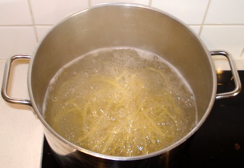 Boil the spaghetti for the time indicated on the package in salted boiling water.