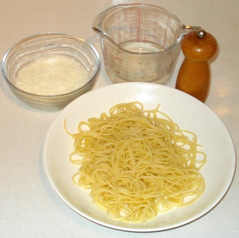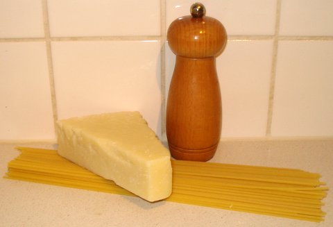 After two humble pasta dishes from Rome (Carbonara and Amatriciana), this one is even more simple. The sauce is made from only three ingredients: freshly grated pecorino cheese, freshly ground black pepper and a bit of the pasta cooking water. The cheese and starchy cooking water together will form a creamy sauce.