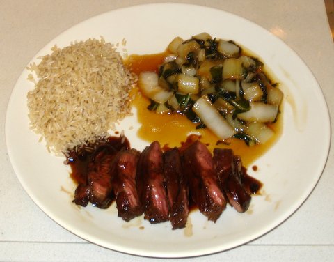 It is now ready to serve. I served it on preheated plates with stir-fried pak soy and rice.