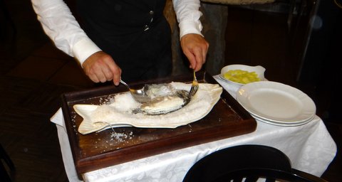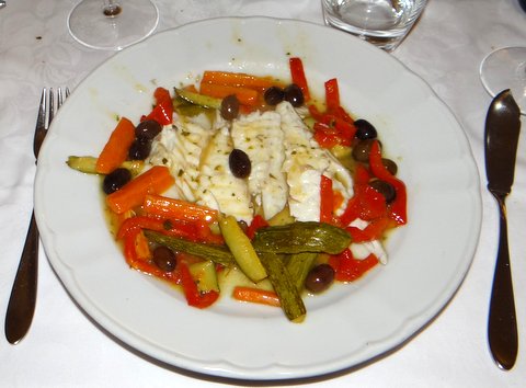 The house specialty was very fresh seabream (orata), cooked in the oven with vegetables or in a crust of salt. The fish was filleted table-side, with one waiter being very good at this and thus doing this all evening.