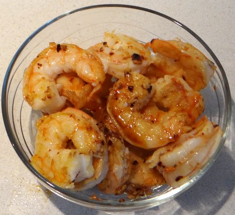 Put the flambeed shrimp in a bowl together with any juices left in the pan and set aside.