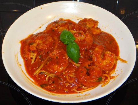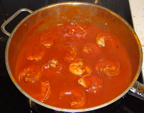 I was intrigued by this recipe by Pasta Princess since it involves flambéing the shrimp, and decided to make my own version with some alterations. As far as I’ve been able to find out by googling, Fra Diavolo is a recipe that is typical of the Italian kitchen in the United States. Nevertheless I tried to make this recipe like I believe it might be made in Italy.