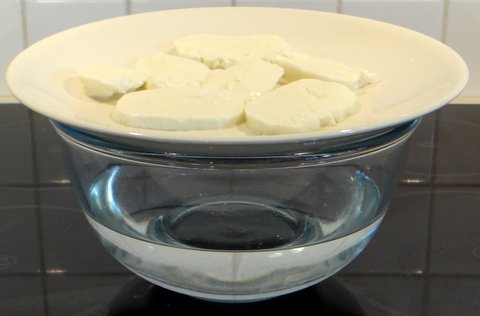 After a few minutes, a milky fluid will leak out of the mozzarella. It is now ready to be served.