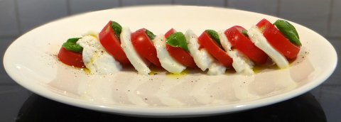 Insalata Caprese is almost too simple to blog about, but I do have some interesting tips to provide. At the risk of writing the same thing over and over, this dish is a classic example of Italian cuisine that relies completely on the quality of the ingredients. Use the best flavorful ripe tomatoes you can find, fresh fragrant basil, the best extra virgin olive oil you can afford, and last but not least the best mozzarella you can afford (and find!), preferably buffalo mozzarella.