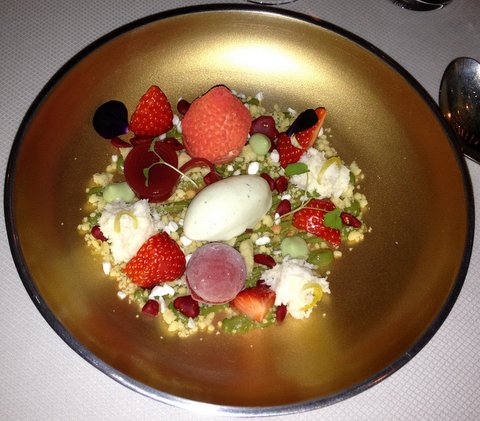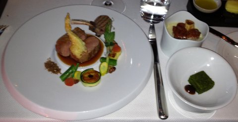 Three preparations of lamb: saddle, rack and shank. All of them very good and a nice pairing with a red burgundy Beaune 1er cru. 9/10