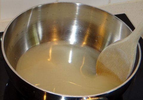 Make the sushi dressing while the rice is cooking. Mix the ingredients (rice vinegar, sugar and salt) in a saucepan.