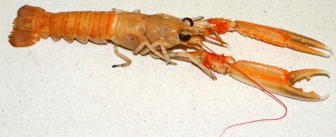 Make a deep incision on the back of the scampi with a sharp knife, making sure not to cut the scampi in two.