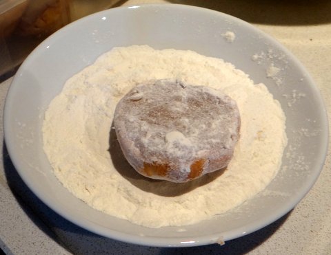 Dust each item with flour.