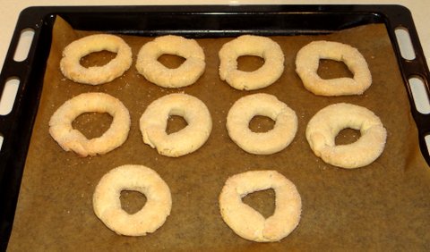 When he tasted my cantuccini, my co-worker Mauro said that he usually prefers ciambelline al vino, the typical cookies from his home-town Rome. I had never heard of those, but decided to make them and liked them. You can make them with either white wine or red wine. Although I have not tested this theory myself, I believe these cookies are very suitable to bake with children. Easy dough and an interesting shape. The alcohol will of course evaporate when they are baked.