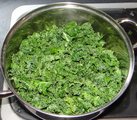 The kale I bought was already shredded and washed. I’m sure it’d be better with fresh kale, but this is what I could find.