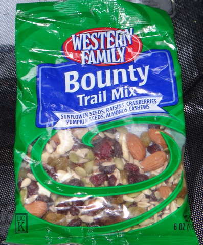 The recipe called for dried currants and toasted sunflower seeds. The closest I could find in West Yellowstone, MT was this trail mix that also had some other stuff in it.
