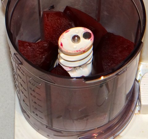 I then rubbed off the skins, cut the beets into quarters and put them in the blender.