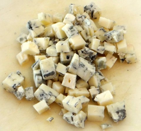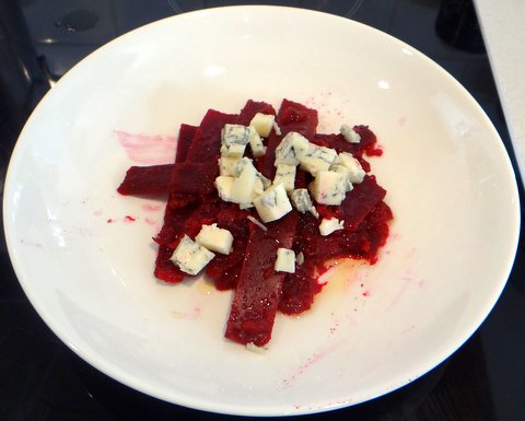 I diced some gorgonzola to serve with the beetroot tagliatelle.