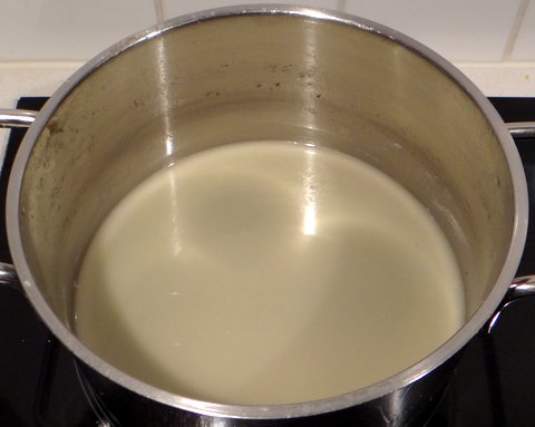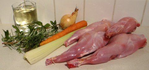 Add white wine and stir until half the wine has evaporated. Add the rabbit stock and lower the heat to a mere simmer.