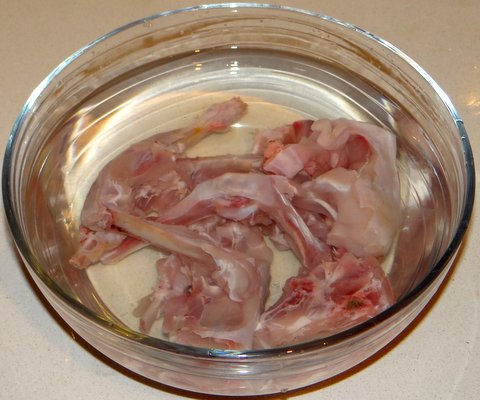 Let the bones soak in cold water for a few minutes to remove any traces of blood.