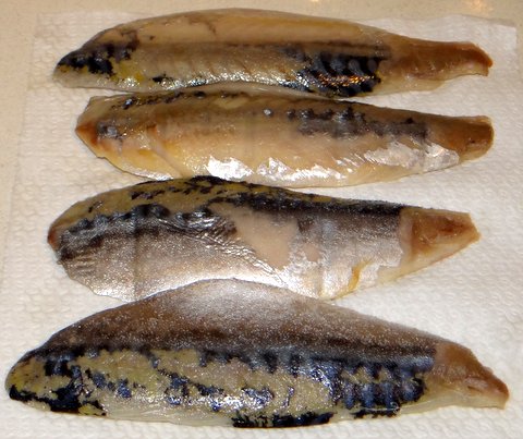4 sushi grade mackerel fillets without skin, about 450 grams (1 pound) total weight