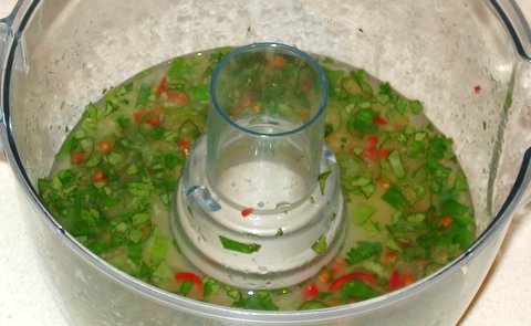 Add the cilantro and chile pepper to the lime juice and stir to mix.