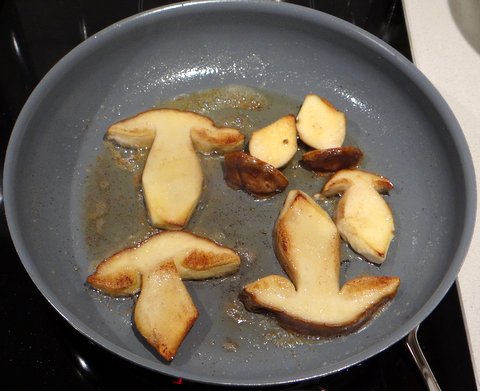 Melt the butter in a non-stick frying pan over medium-high heat and sauté the porcini slices for a few minutes on each side until they are golden.