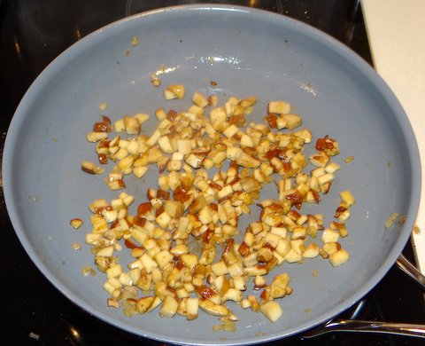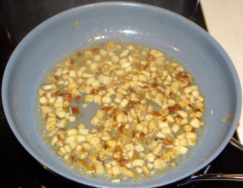 Sauté over medium high heat until golden. Meanwhile, bring a big pot of water to a boil for the pasta.