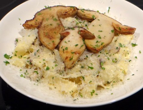 Serve on warm plates and top with the sautéed porcini slices. Sprinkle with a bit of freshly grated parmigiano and parsley. Serve immediately.