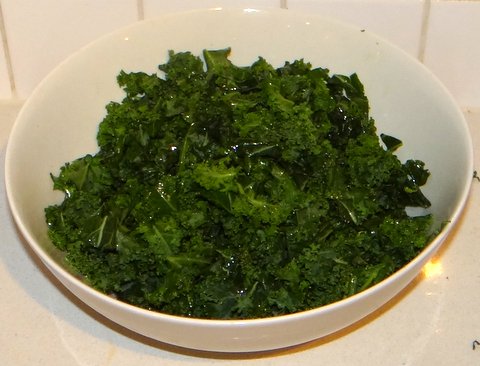 Add 1 tsp salt and massage for 2 minutes until the kale is tender (perhaps I should have massaged it longer, as the Dutch kale was still not as tender as the American kale I had a few weeks ago).